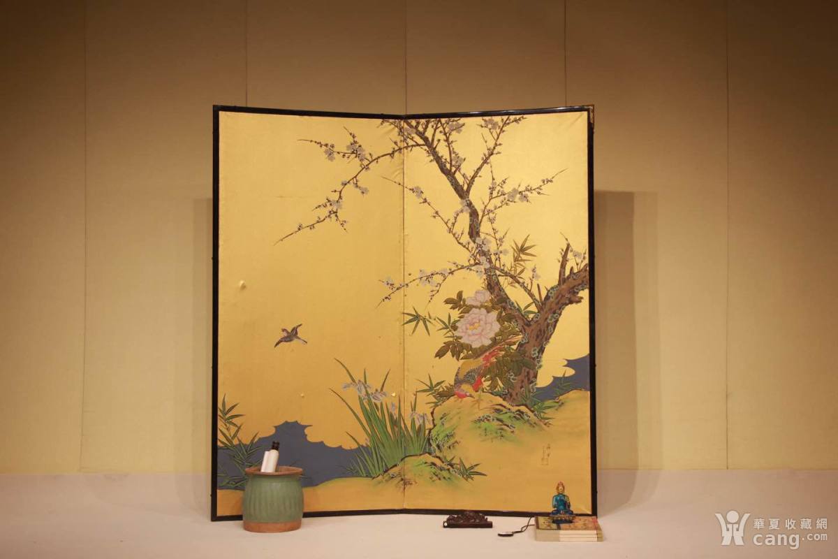 金箔花鸟屏风 此屏风金箔为底,彩绘梅花、牡丹、兰花、锦