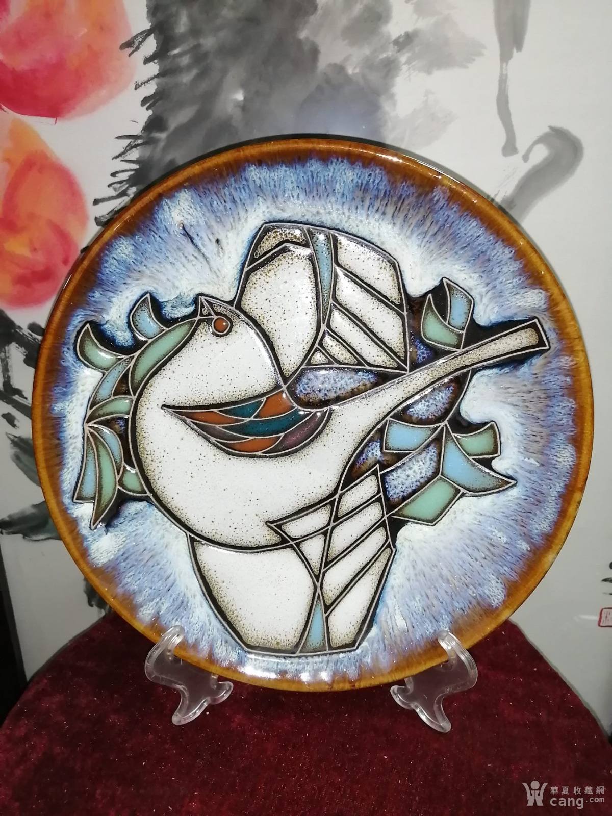 80年代淄博美陶窑变和平鸽艺术盘韩美林作品