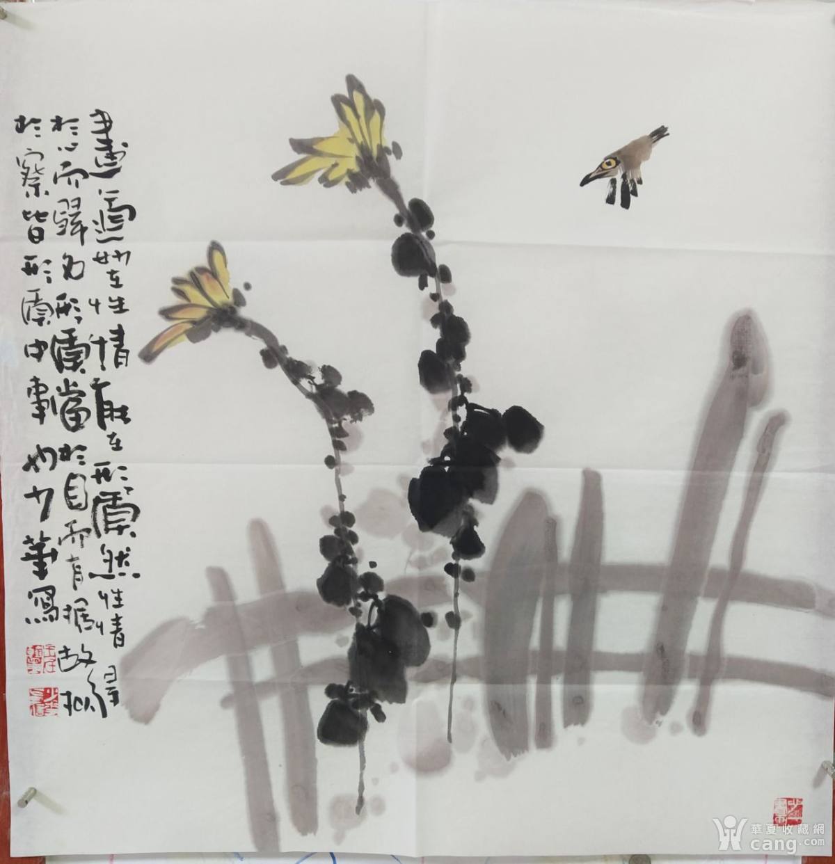 国家一级美术师*王少华手绘真迹大写意花鸟斗方 68/68cm