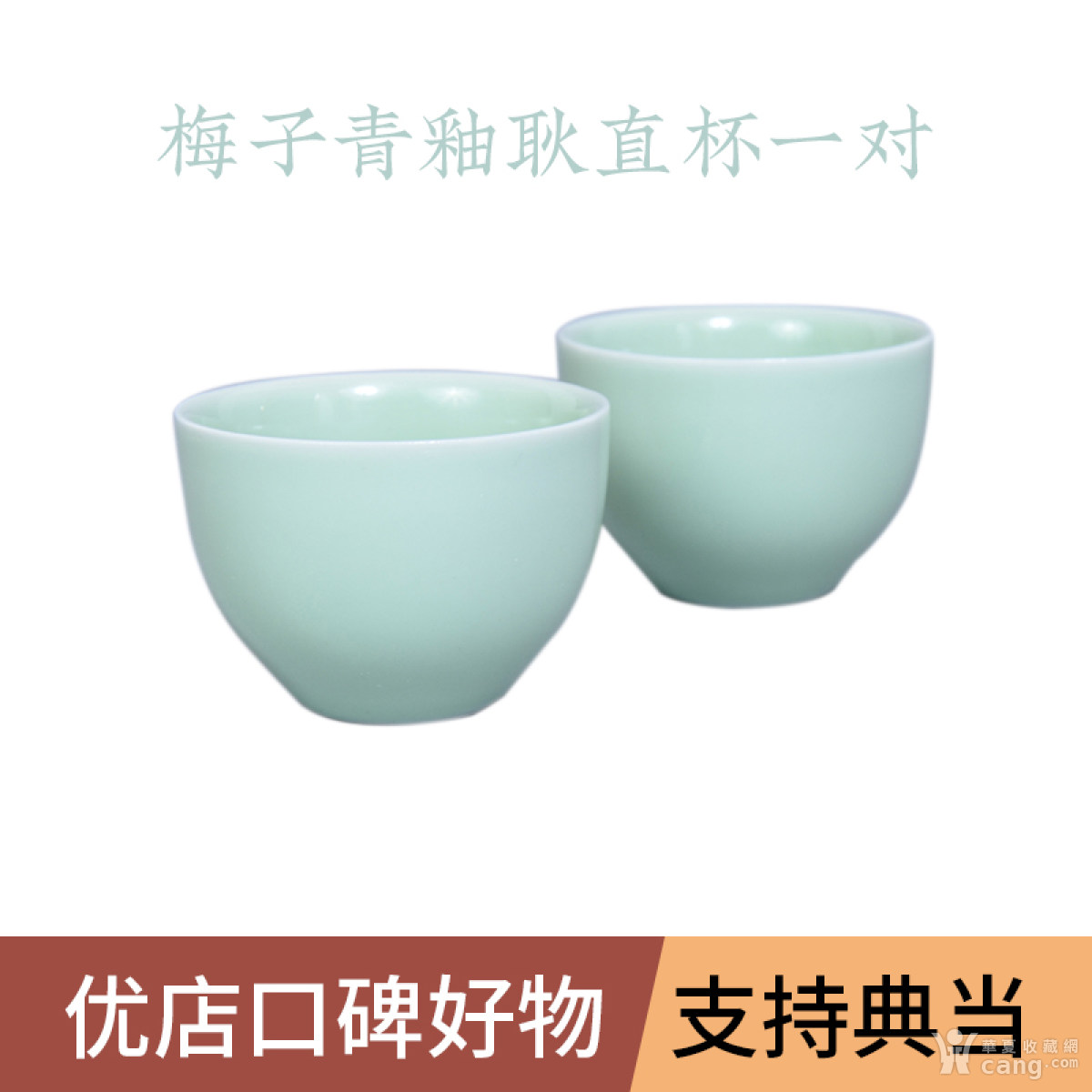 【保真能典当】当代 梅子青釉耿直杯一对