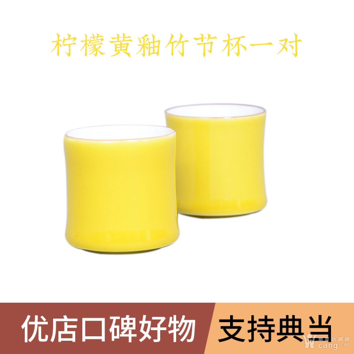 【保真能典当】当代 柠檬黄釉竹节杯一对
