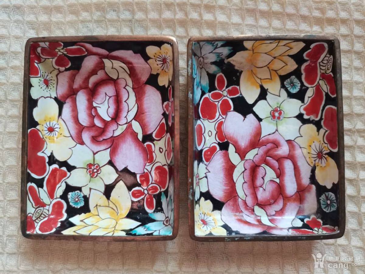 铜胎画珐琅花卉纹笔舔一对