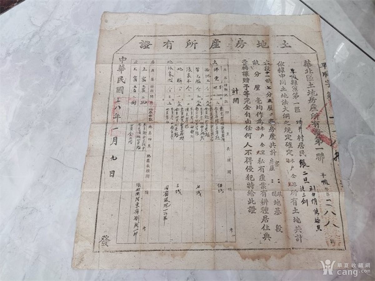 民国三十八年华北解放区山西省平顺县土地房产所有证