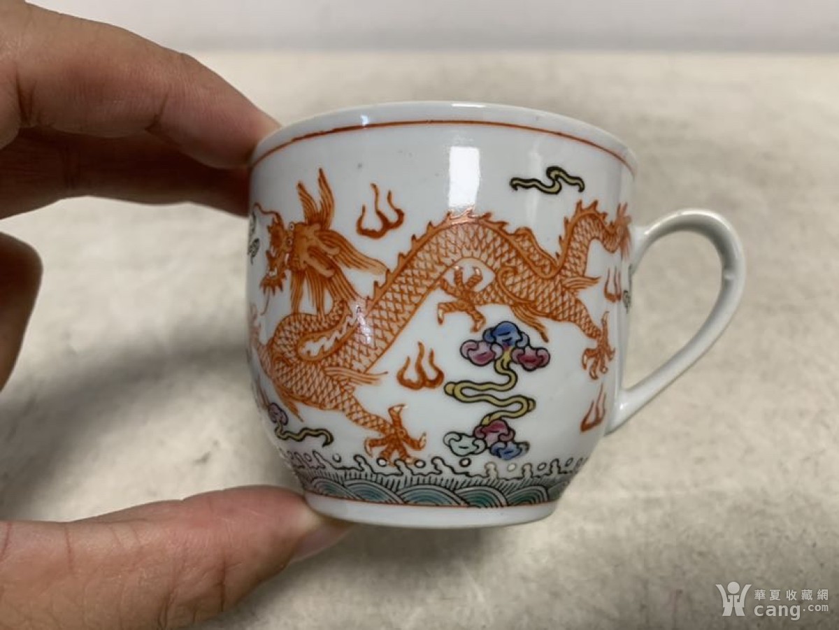 文革蓝款中国制造粉彩双龙戏珠小执杯
