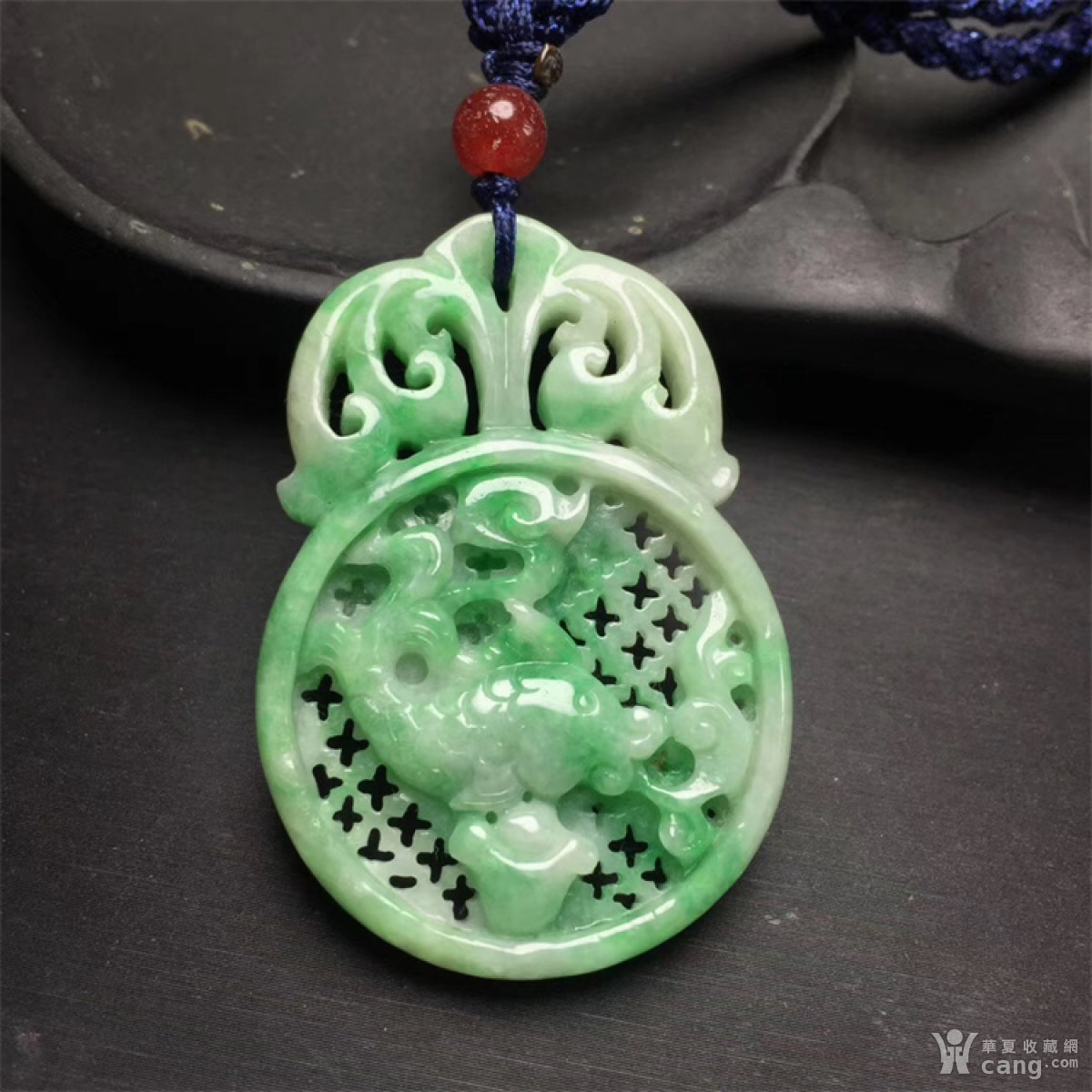 T47创汇期糯冰种飘阳绿翡翠连年有余吊坠
