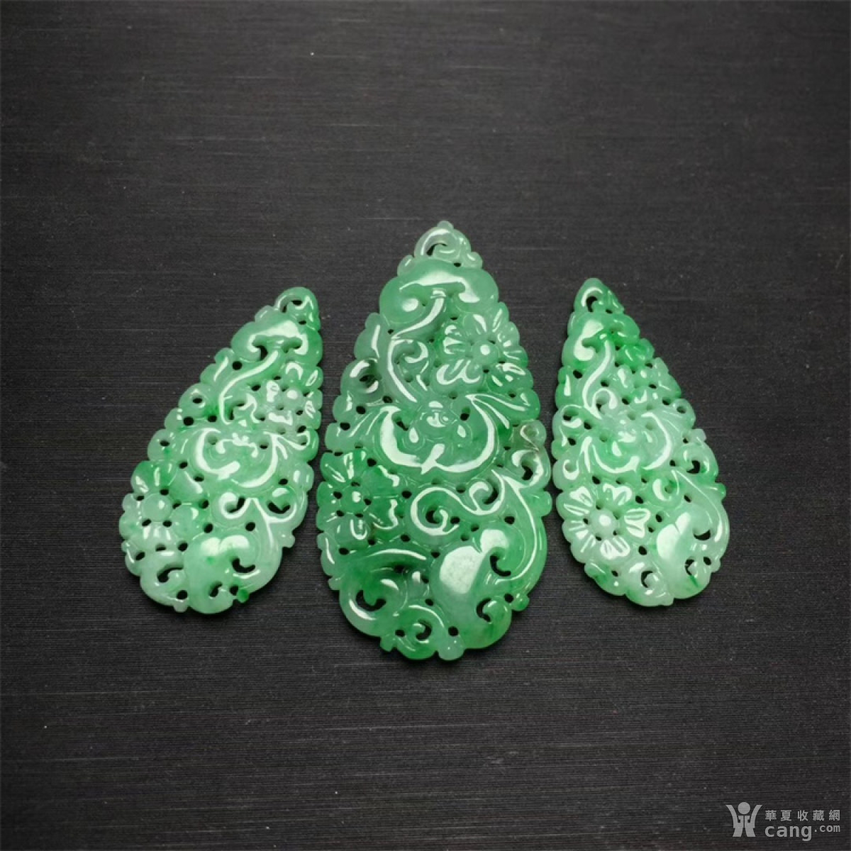 D522创汇期糯冰种飘绿翡翠蝙蝠如意纹花片三件套花片