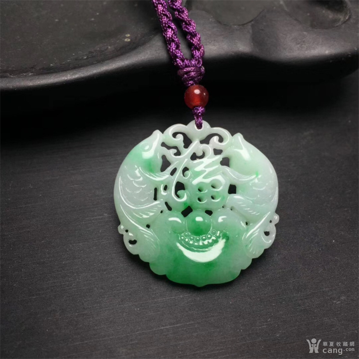 x527创汇期白底青飘阳绿翡翠 福庆有余 圆佩