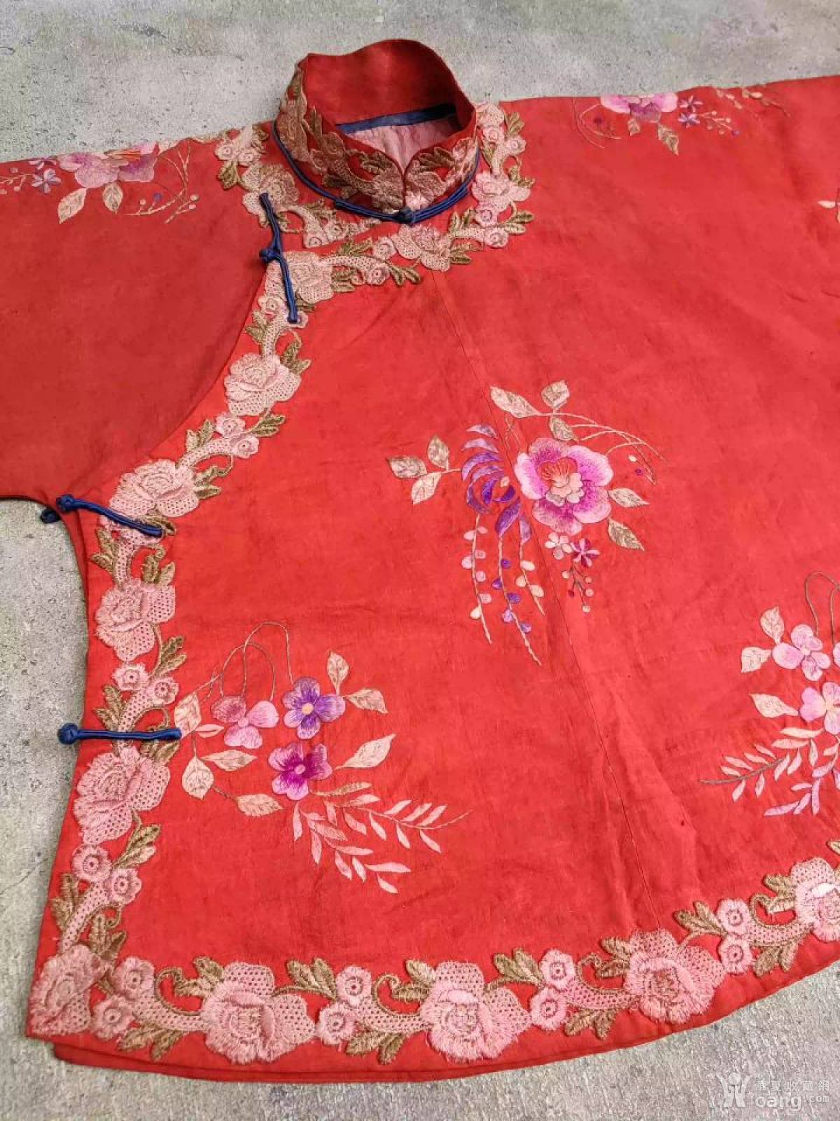 老真丝刺绣/绣花卉图.嵌花边.圆摆倒大袖老衣服,衣长48厘米