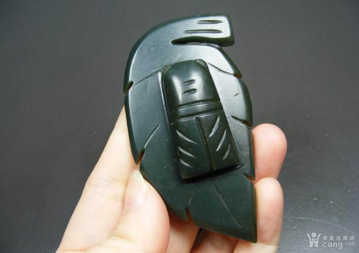 A10/35 X32 和田青玉带沁圆雕带孔秋叶蝉大把件