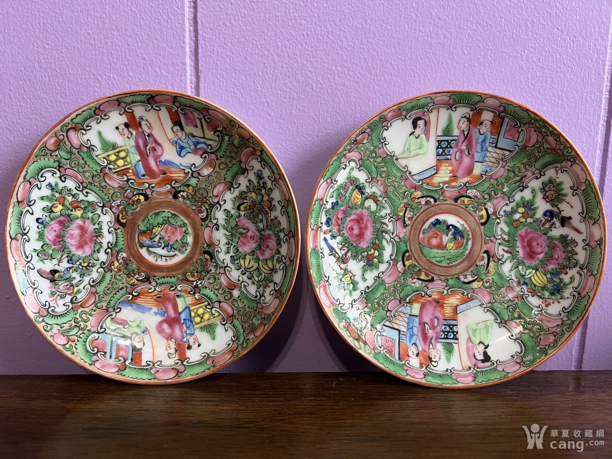 ★【漂亮】晚清光绪广彩花鸟人物纹中盘一对(带款) ★1053