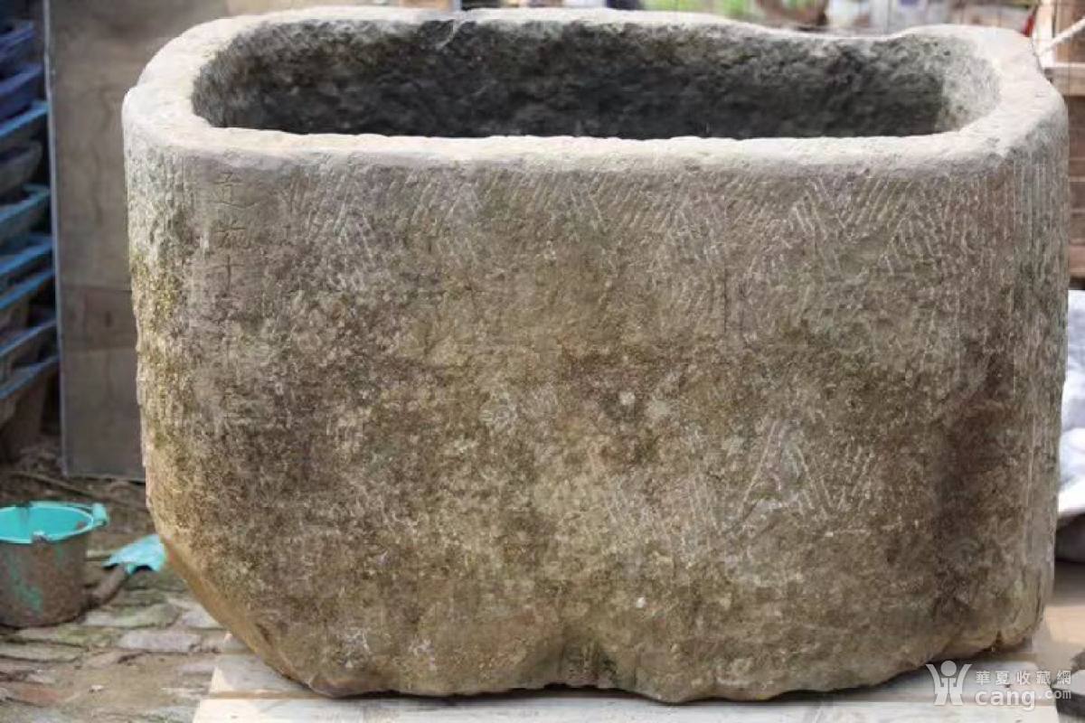青石鱼缸,椭圆型,用整块无石线青石料凿刻而成,映照出古人的智