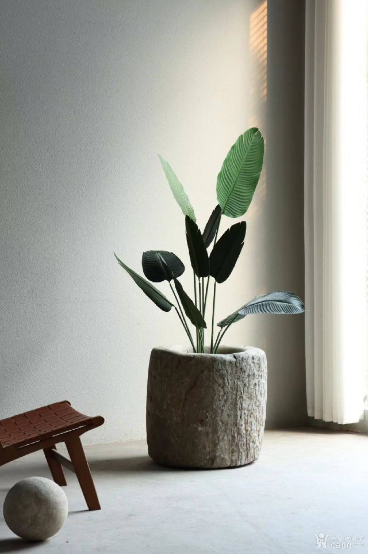 硕大、樸石|庭院空间荷花有器 青石 此石缸形制素简无