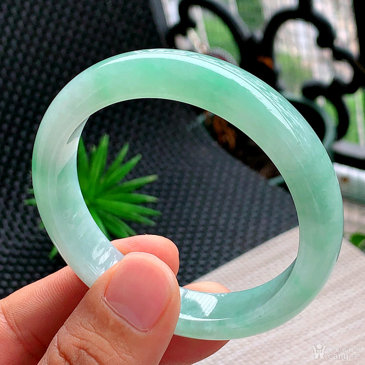 缅甸天然翡翠A货冰透水润飘绿大圈口宽边手镯60圈口