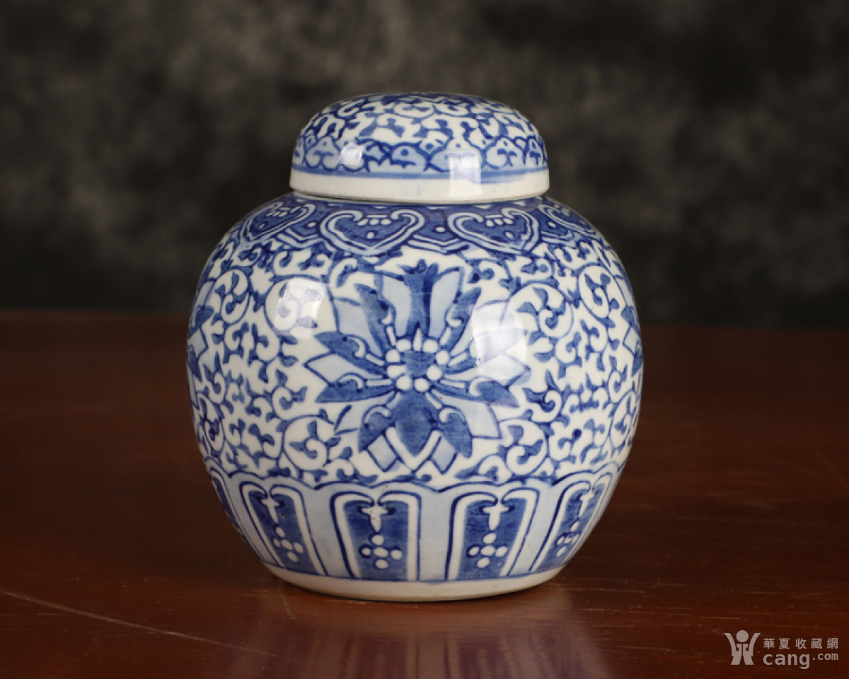 70-80年代建国瓷厂青花洋莲宝珠坛 茶叶罐 糖缸