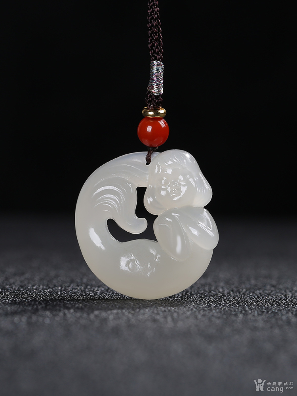 [美人鱼]和田玉青白玉立体美人鱼挂件吊坠g