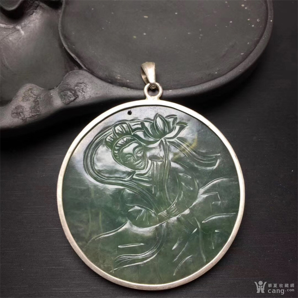 a170清代老坑冰种翡翠镶纯银执荷仙女圆佩