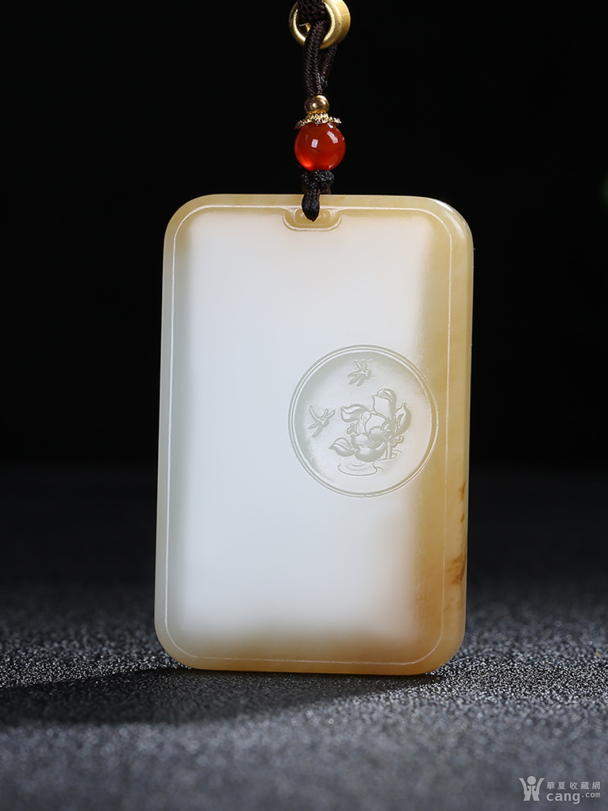 [莲香荷韵]和田玉糖白玉莲花蜻蜓牌子挂件吊坠59.69g