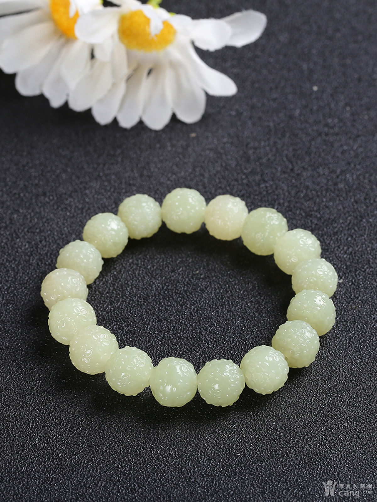 [玉见倾心]和田玉黄玉雕花手链手串g