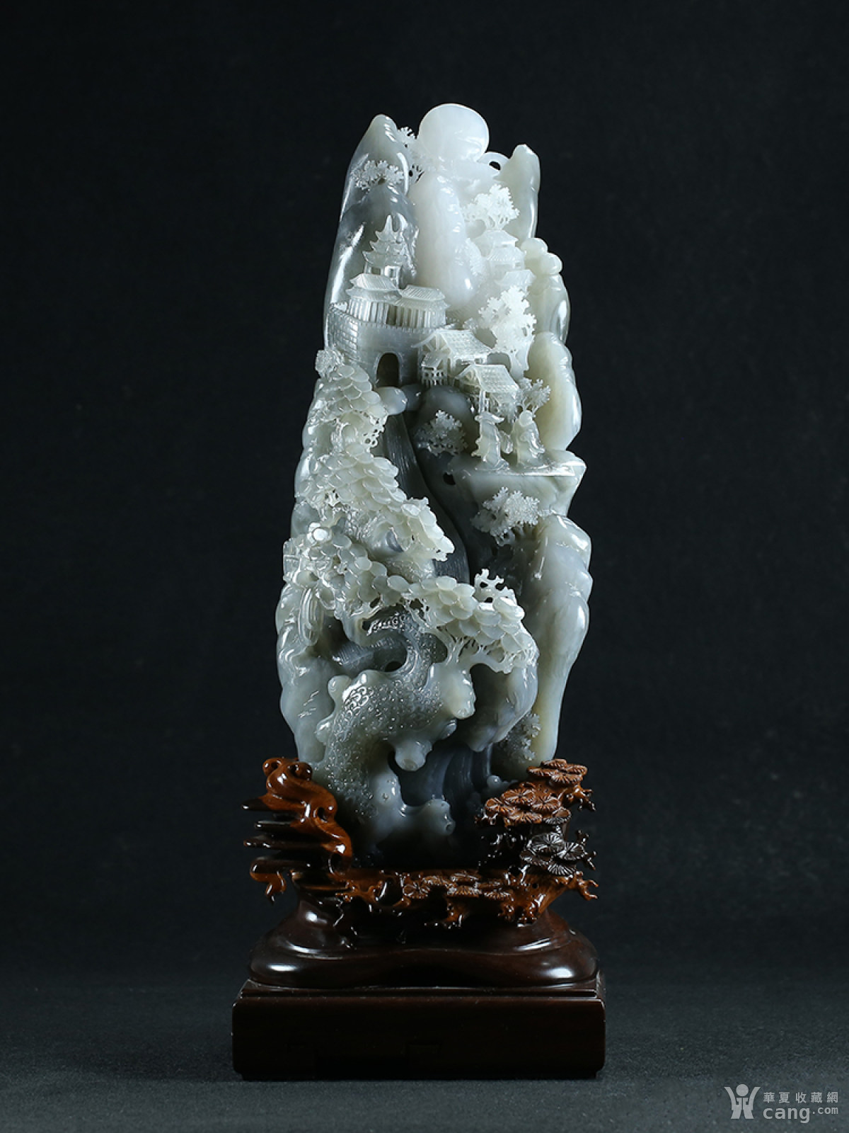 [富贵山居]和田玉白玉灰白山水摆件2163.00g