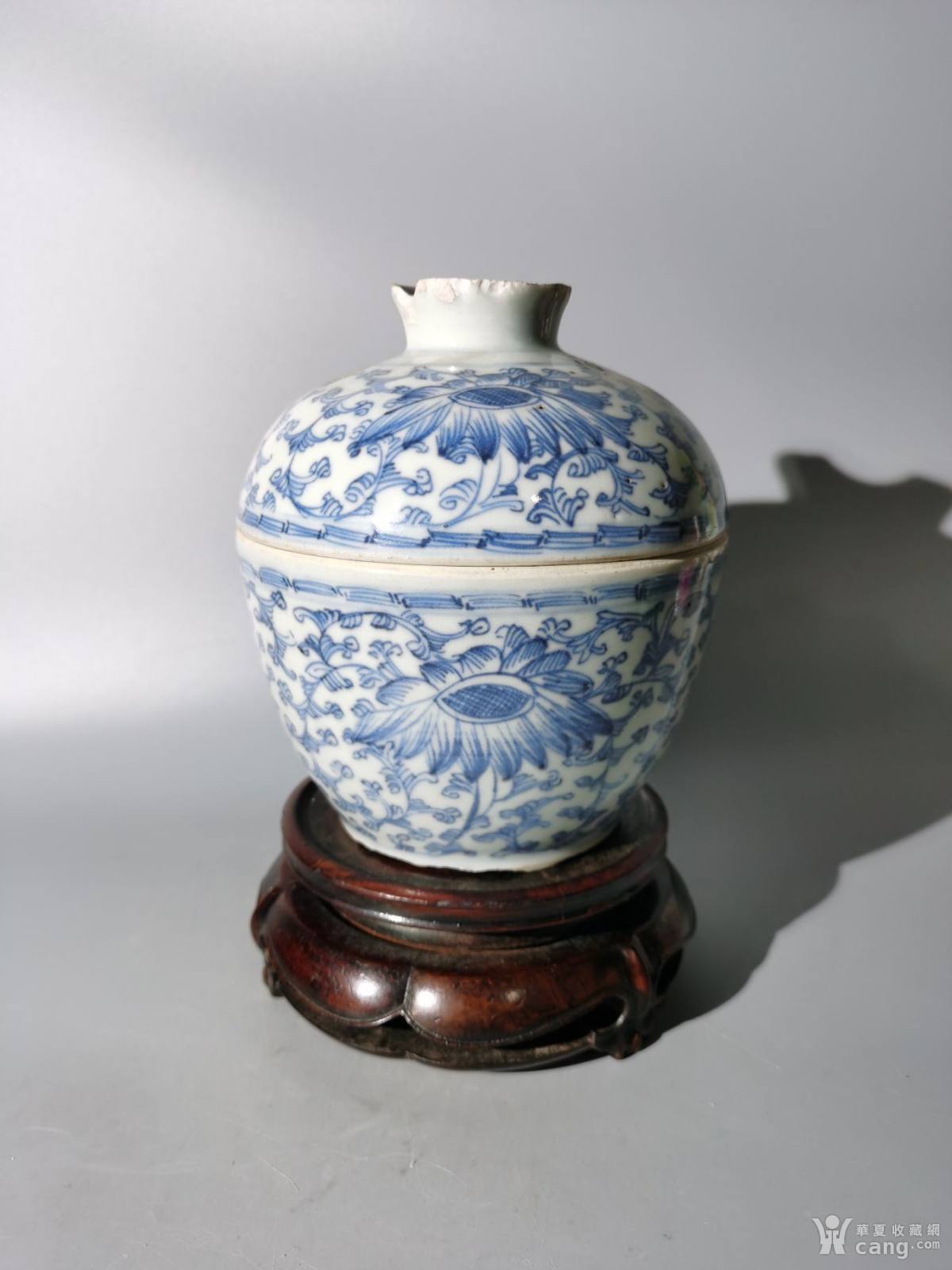嘉庆青花菊花纹盖缸