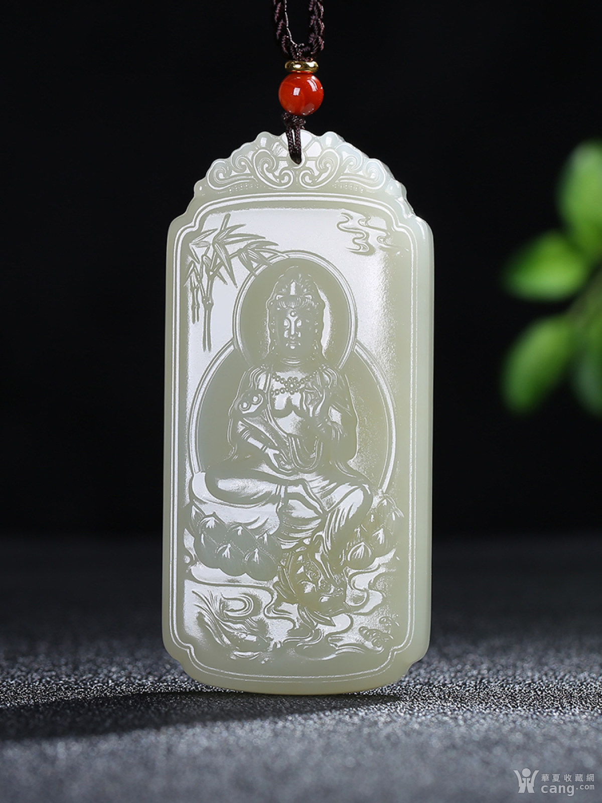 [普渡众生]和田玉青白玉踩莲观音山水福居仿古牌子85.51g
