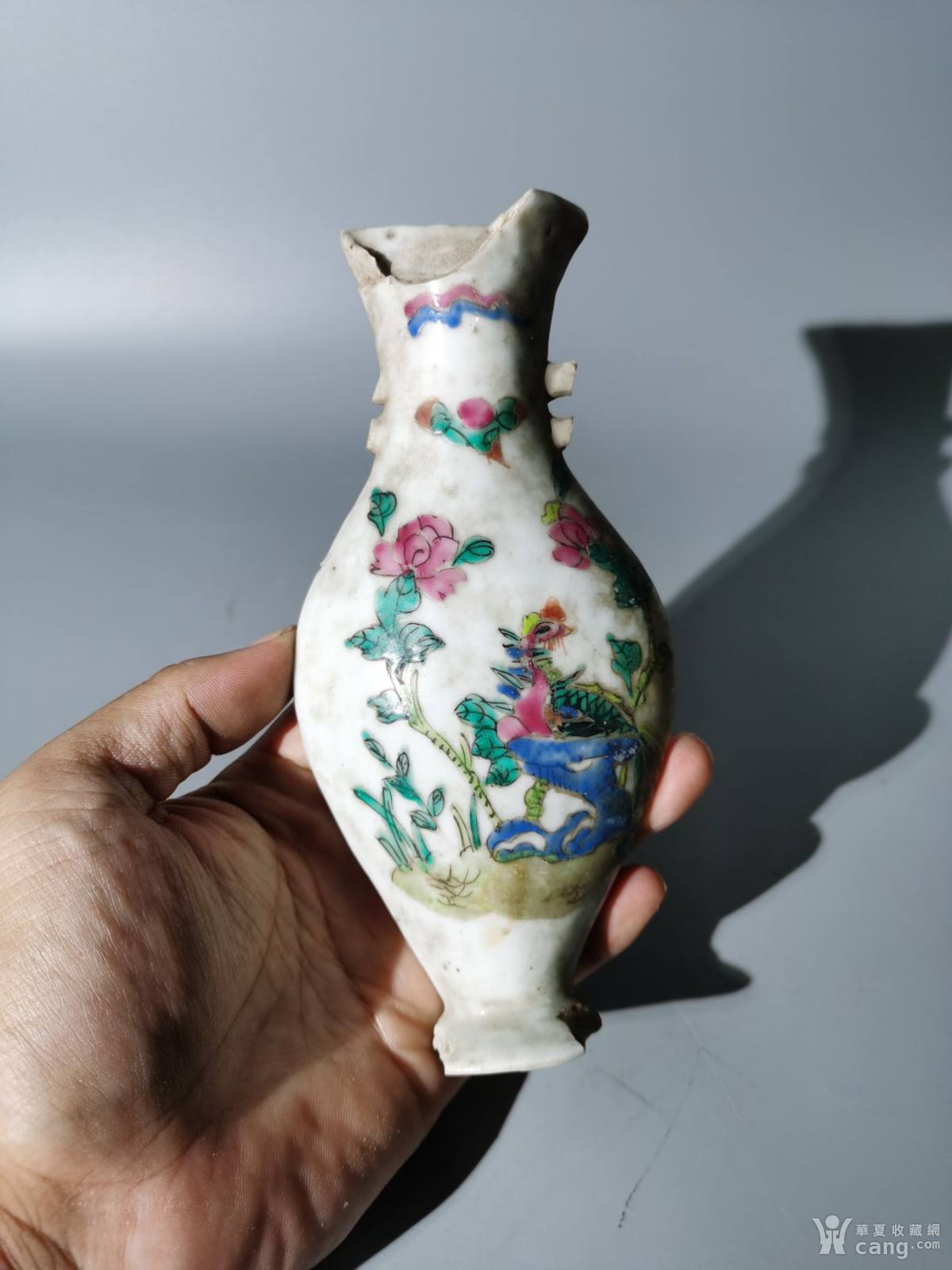 同治粉彩凤穿牡丹壁挂瓶