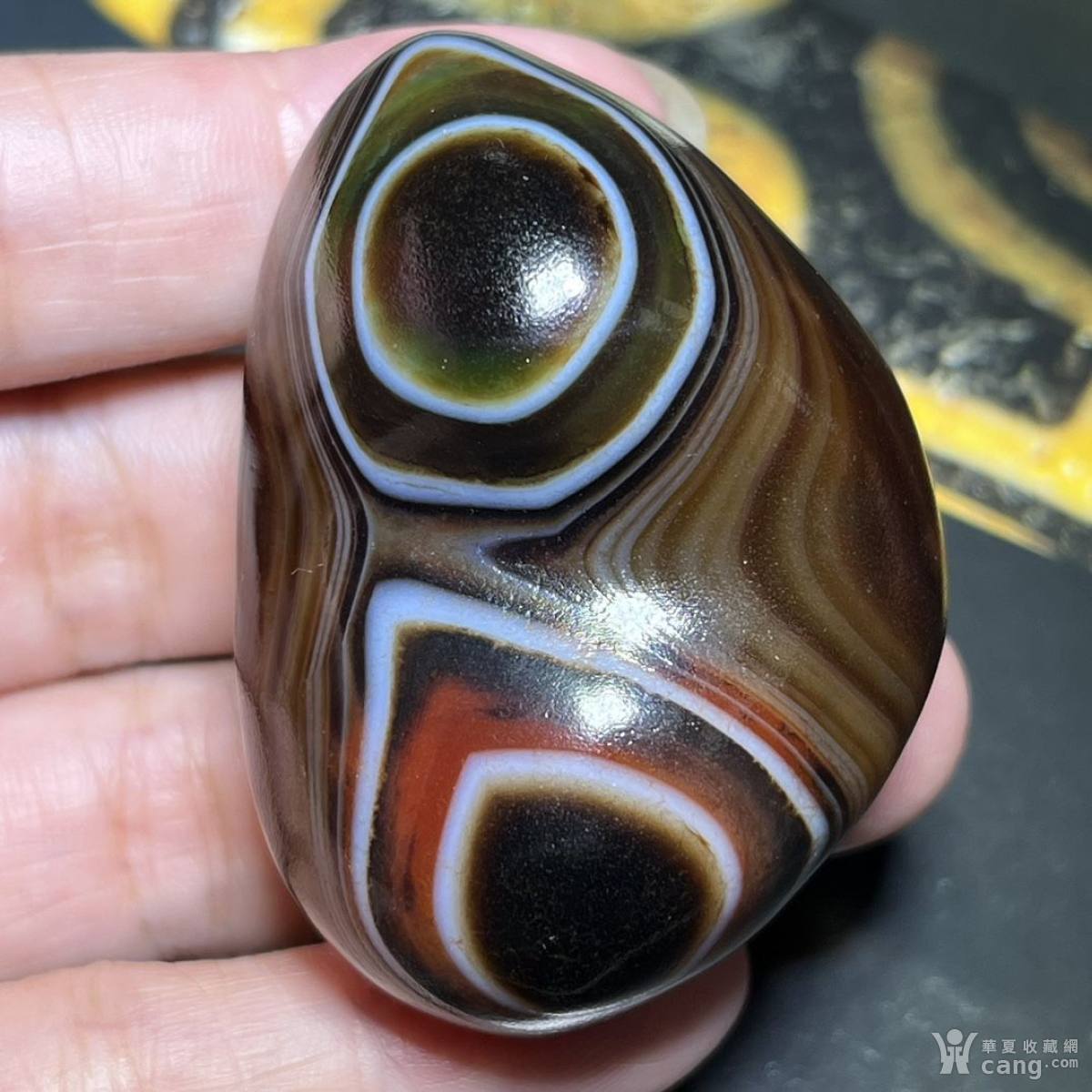 高油包浆老玛瑙两眼天珠挂件(喜)