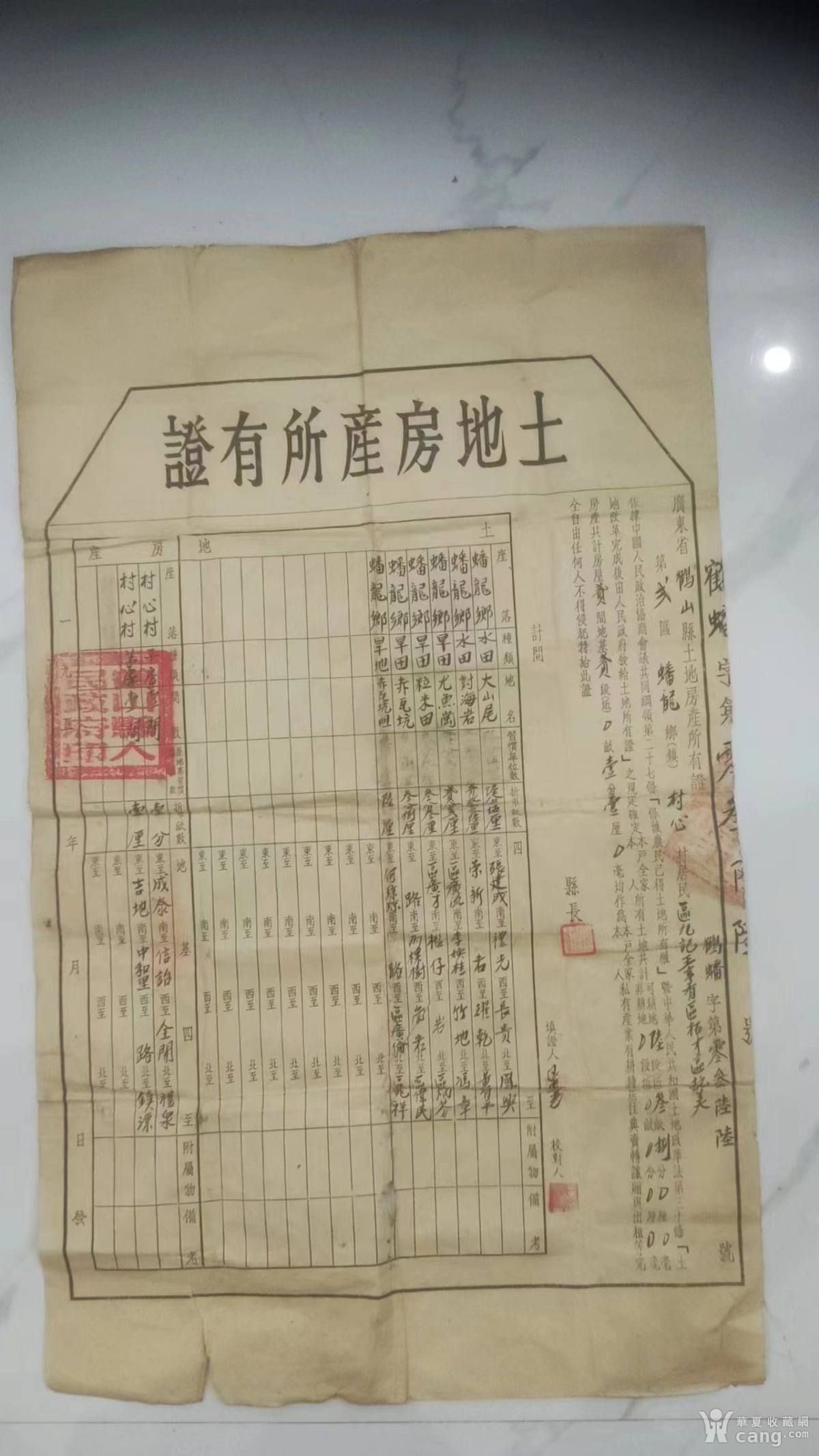 1953年鹤山县第2区蟠龙乡土地房产所有证(鹤蟠字第036号