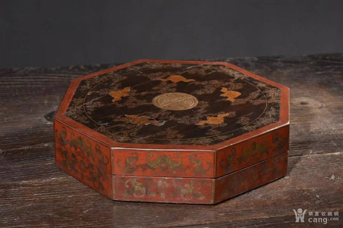 老木胎描真金漆器五福捧寿果盒 高8cm 宽34cm