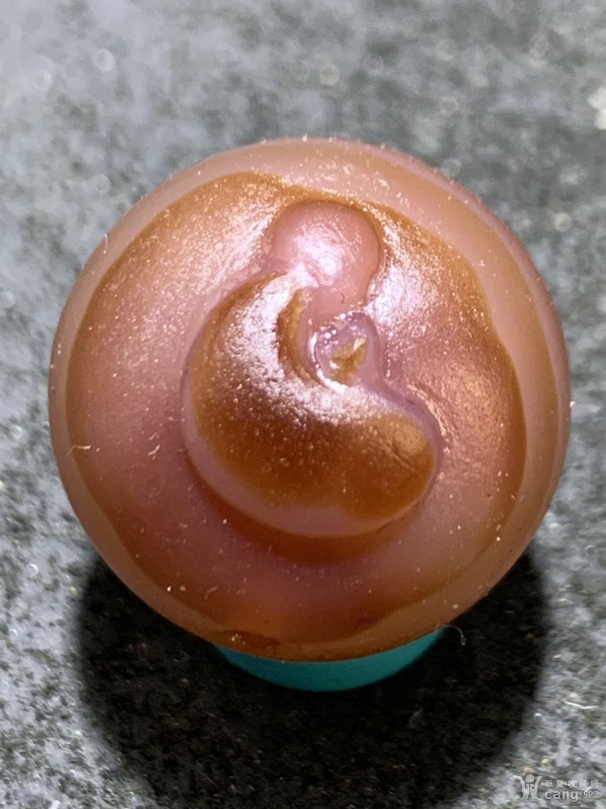 精美亚光高玉化巴西玛瑙手工俏色巧雕一心向佛2.0圆珠一个!