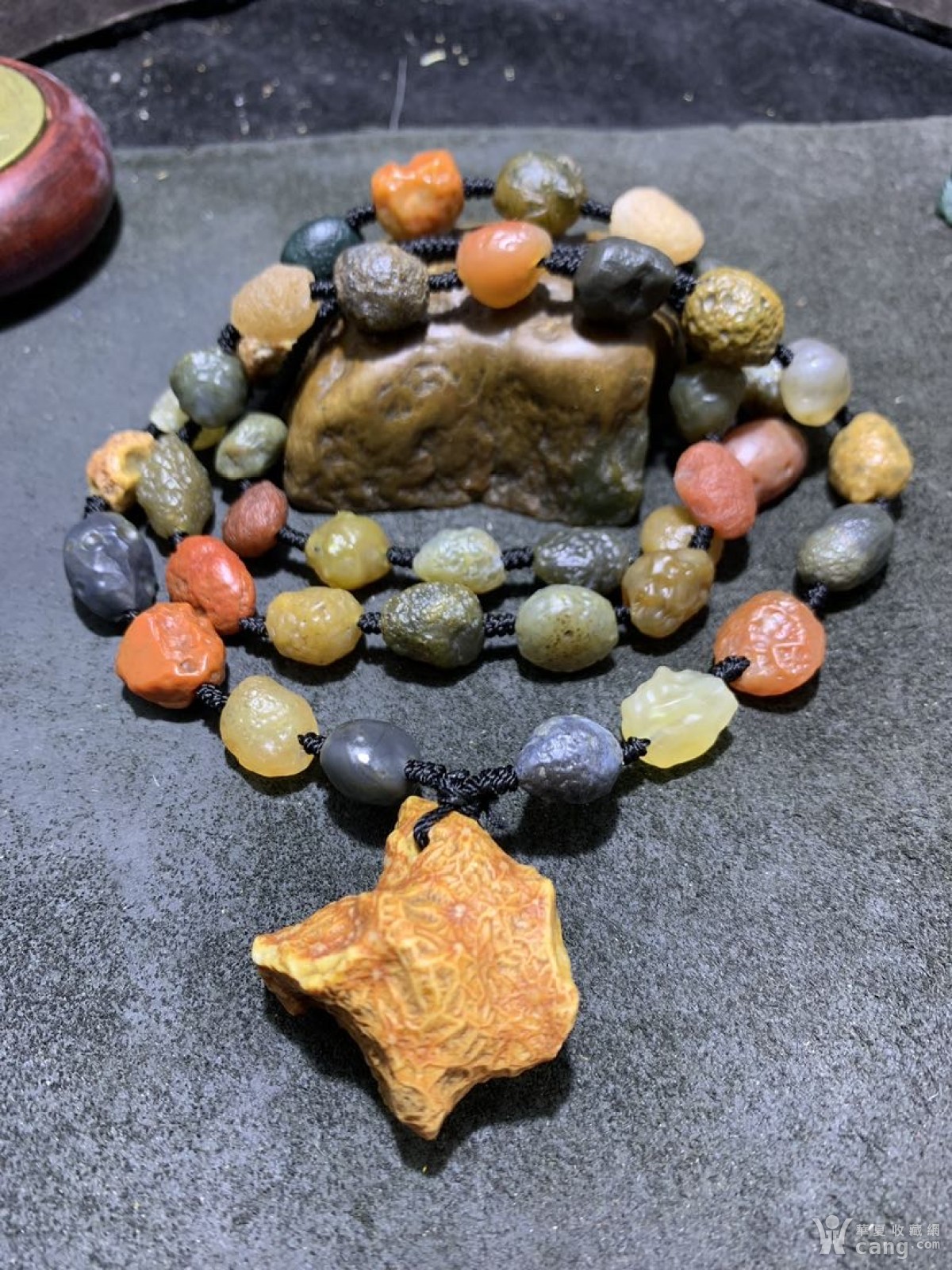 精美阿拉善多彩大颗粒筋脉石玛瑙项链一条,