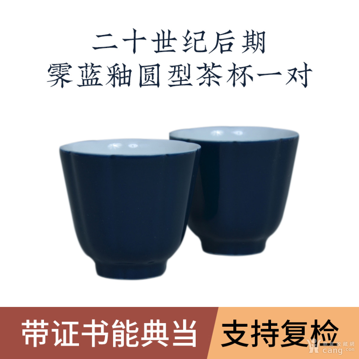 【保真能典当】二十世纪后期 霁蓝釉圆型茶杯一对