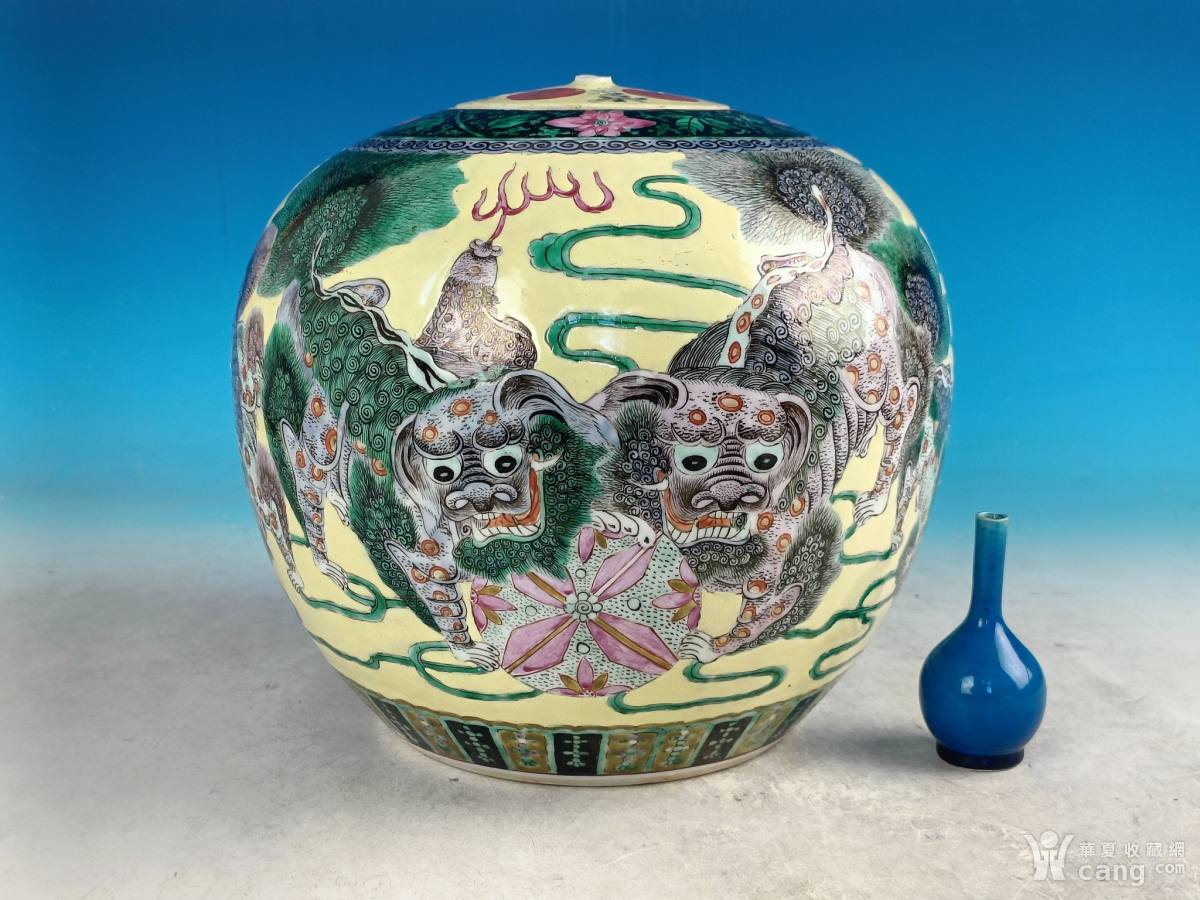 清咸丰黄地细路五彩“九世同堂”“富贵万代”纹大西瓜罐
