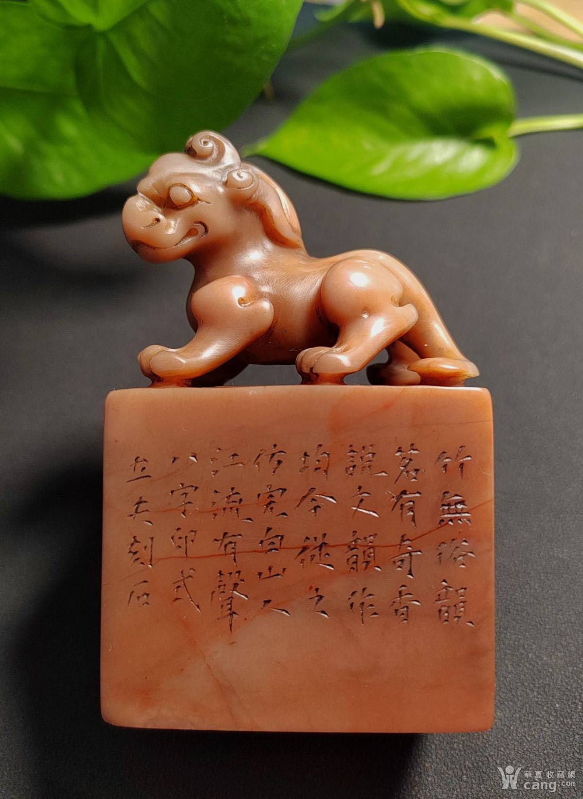 旧藏寿山祥瑞古兽钮大闲印,印文:竹无俗韵,茗有奇香。