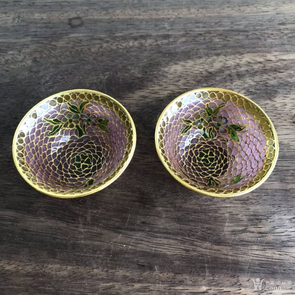 创汇精品景泰蓝脱胎透明蓝茶杯一对