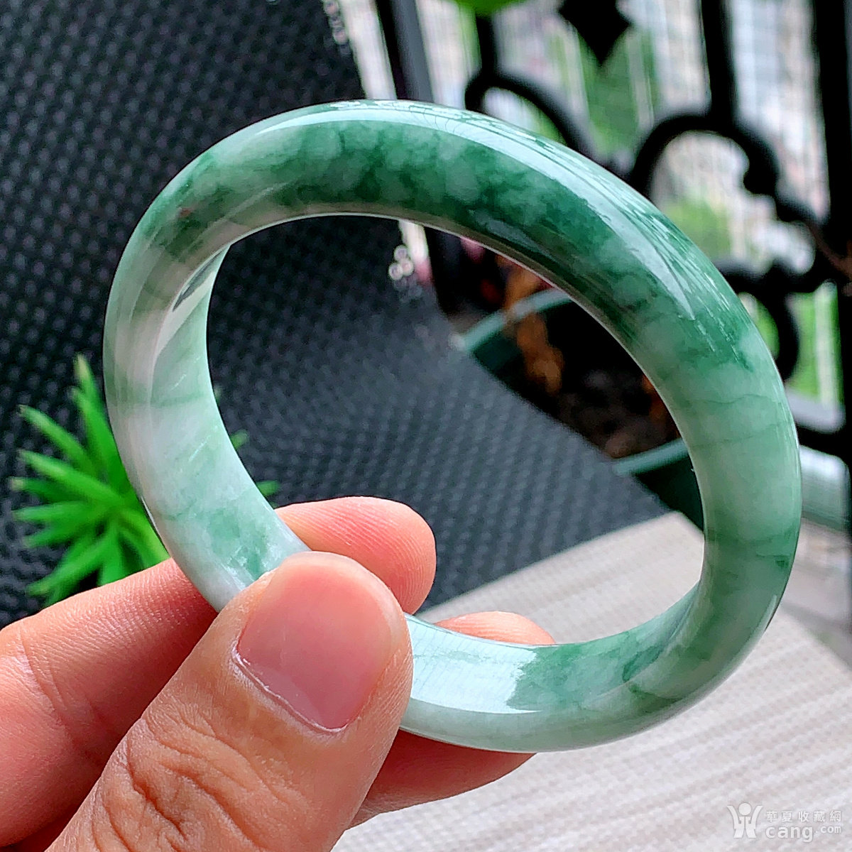 缅甸天然翡翠A货冰润飘绿宽边手镯58.6圈口