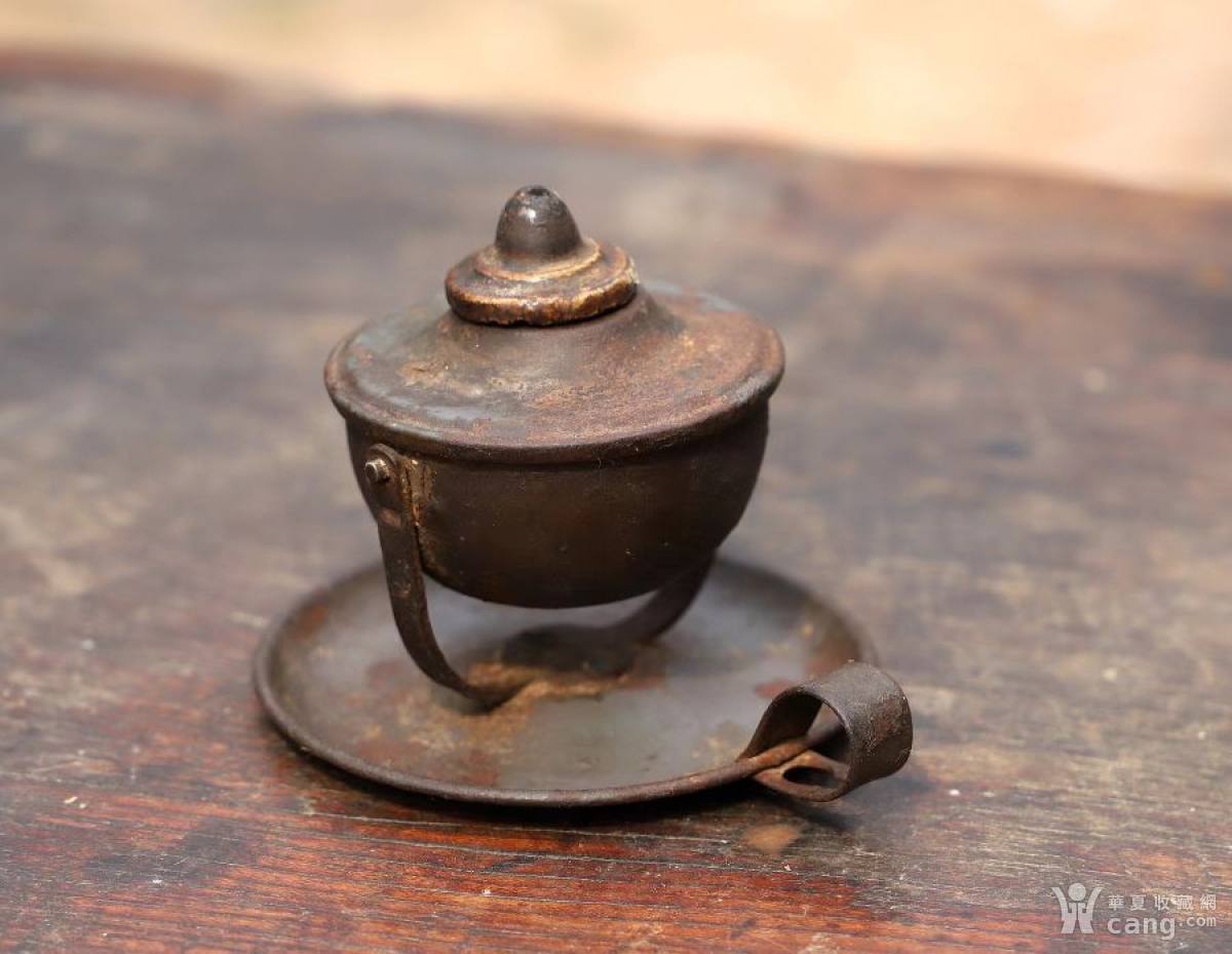 铁灯,上面盖是瓷的,下面是铁镀铜,器型饱满美观,底直