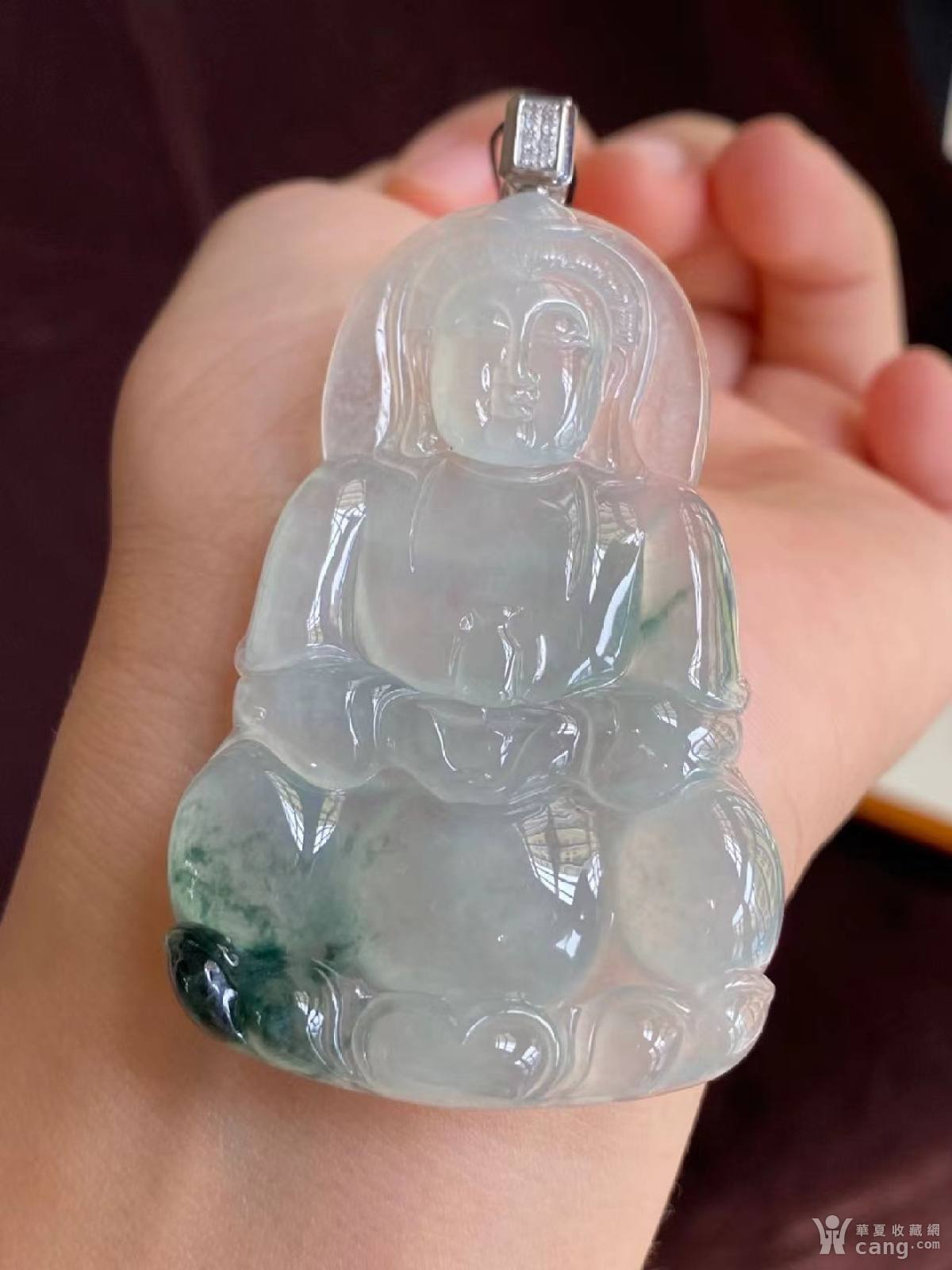 正冰飘花观音翡翠冰冰的 18k金,尺寸66-4