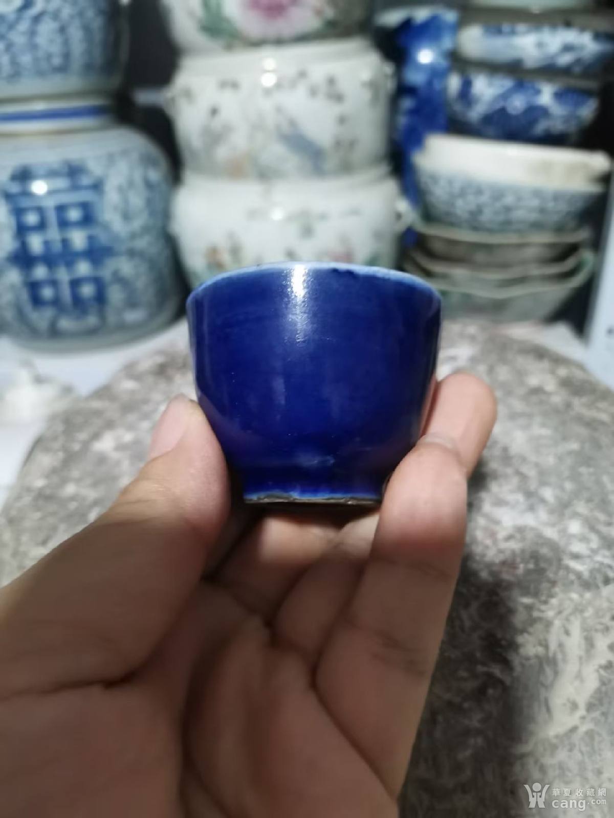清代霁蓝釉酒杯