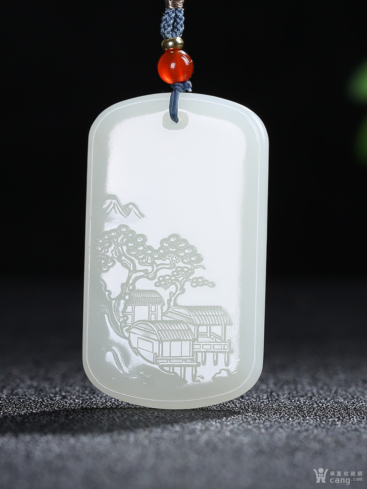 [山居福地]和田玉青白玉山水牌子挂件吊坠30.95g
