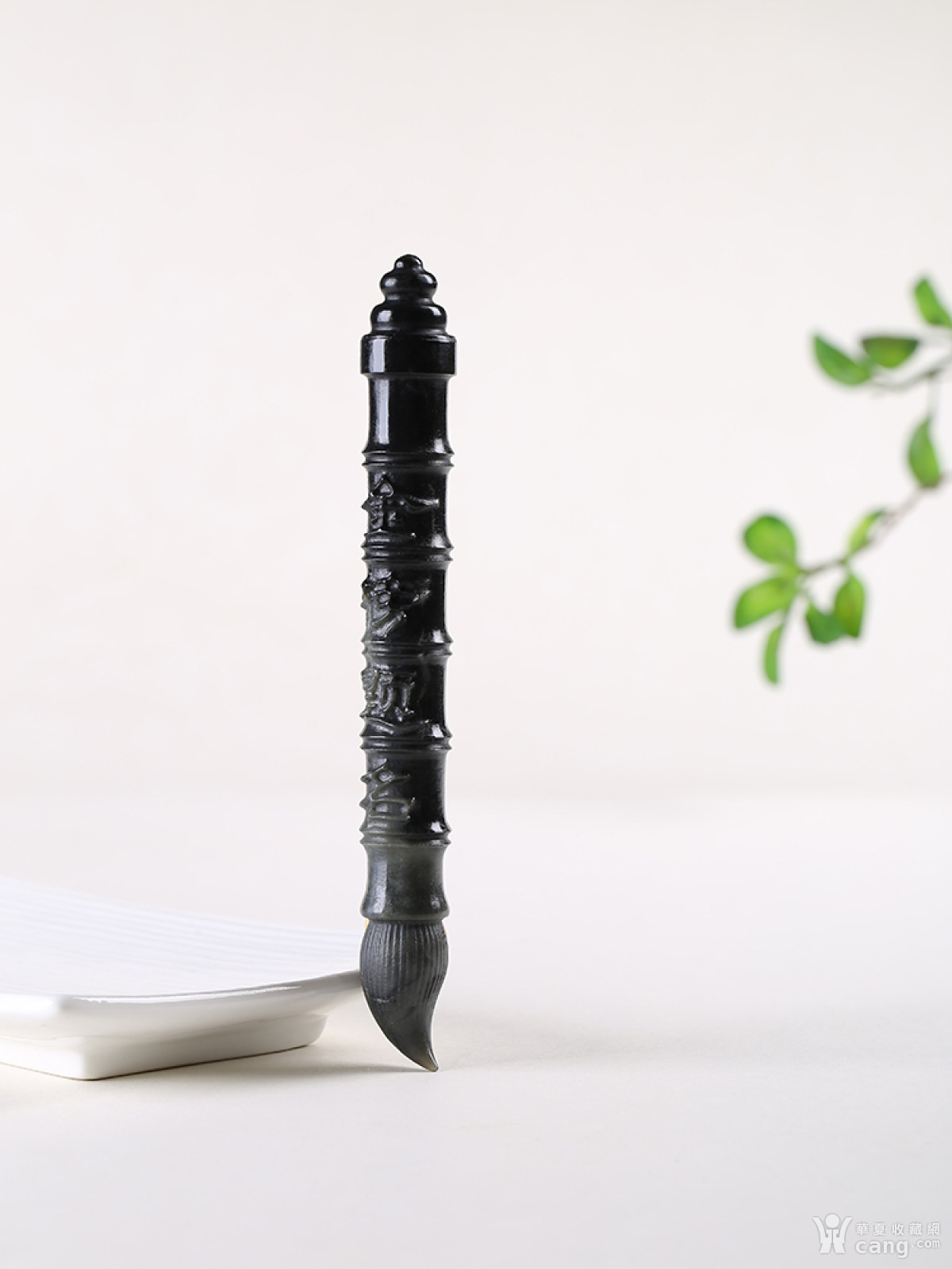 [金榜题名]和田玉青花竹节毛笔挂件摆件g