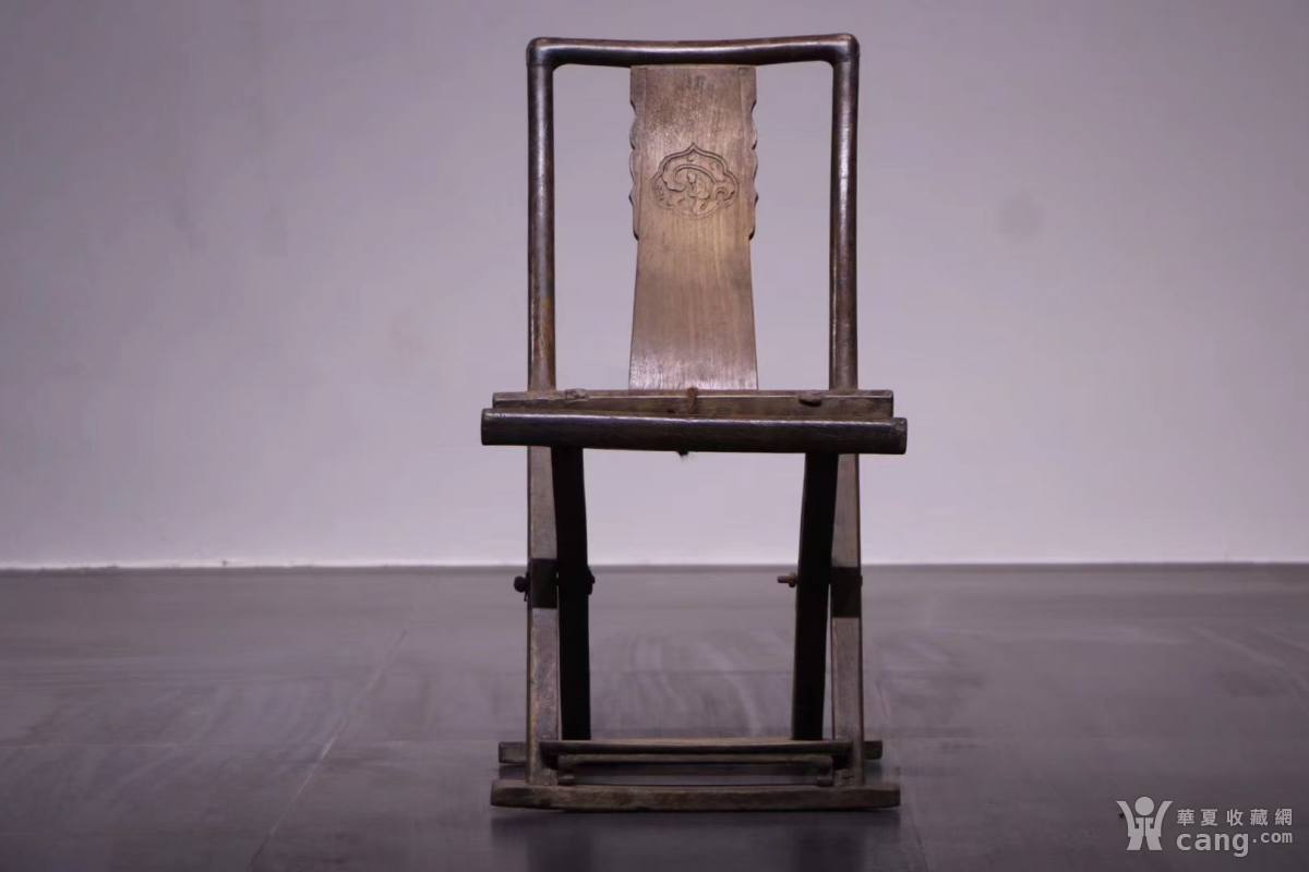 明式红柞木•交椅;背板浮雕螭龙纹,做工精致,扣帽俗称“烟袋锅