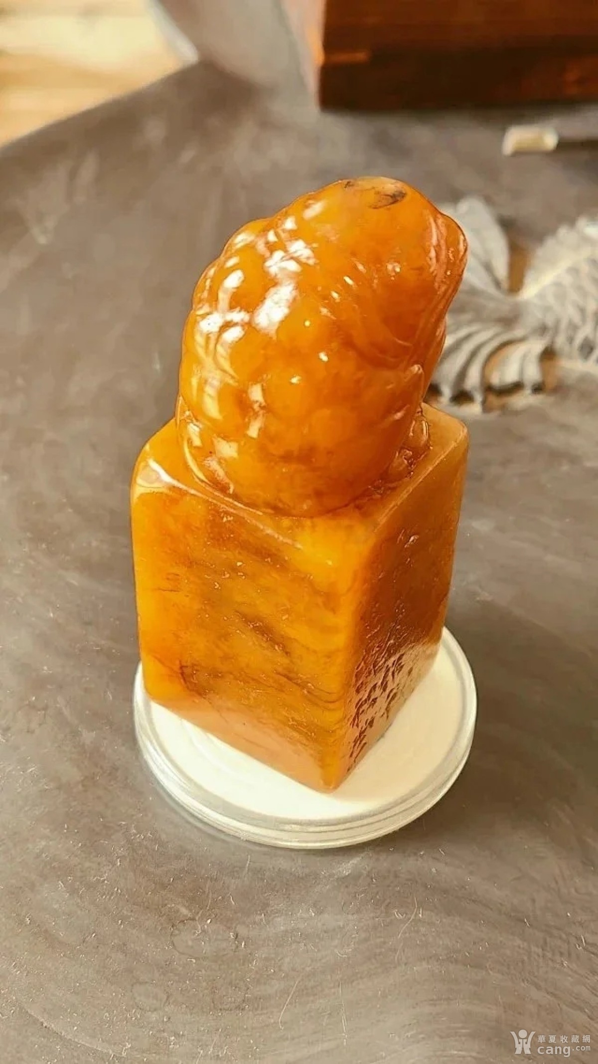 老寿山石田黄印章【秋堂】款,尺寸8.2-3.3厘米