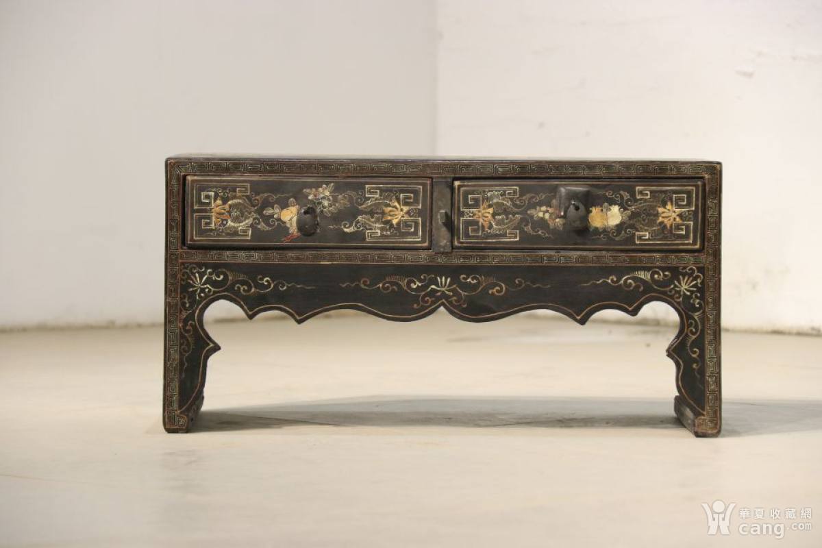 黑漆描金人物二屉卷几;做工精美,完整牢固,描金人物 亭台楼阁