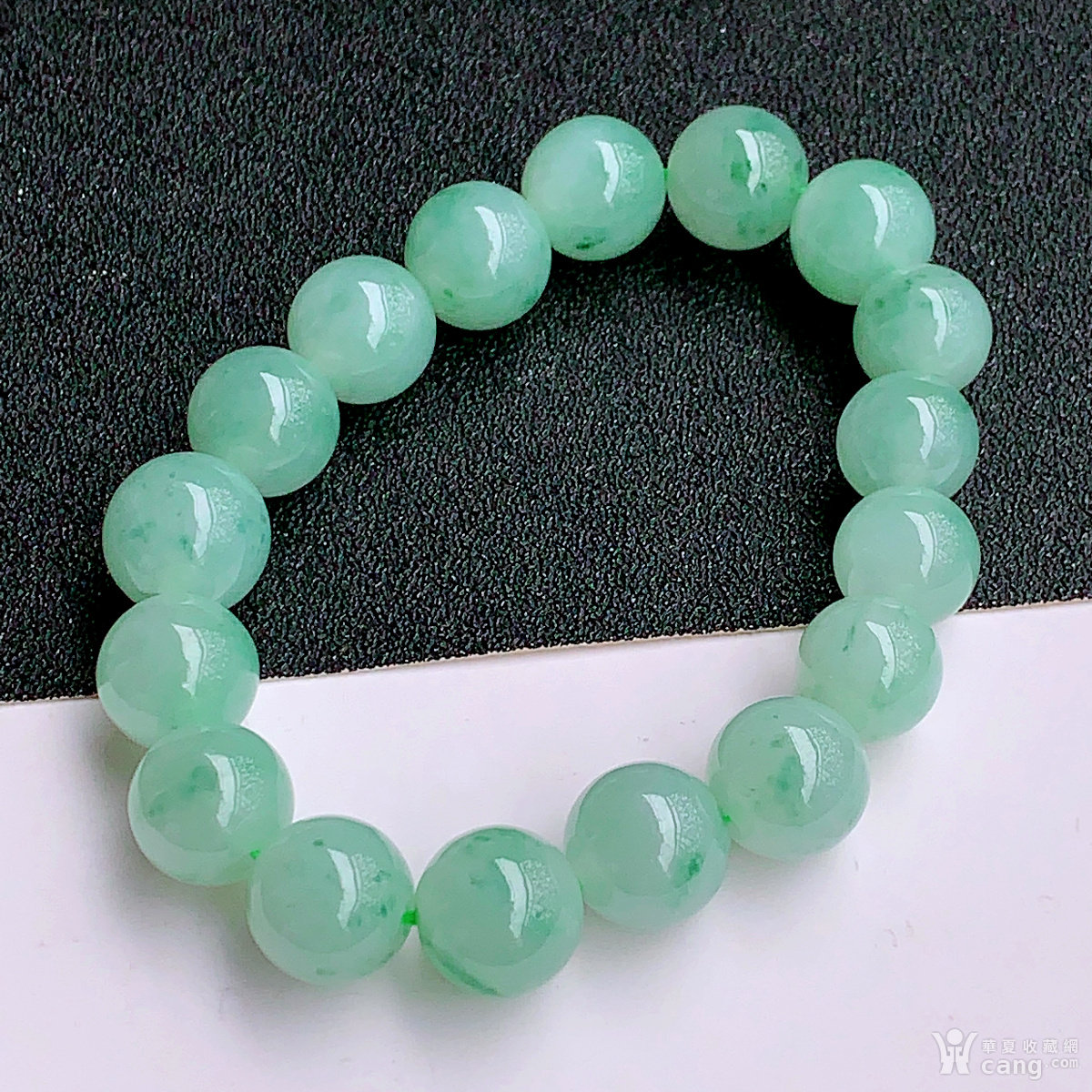 缅甸天然翡翠A货冰透水润飘绿圆珠手串