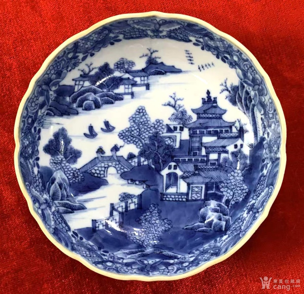 10458#古玩古董瓷清代乾隆花口深腹满工青花风景山水青花盘