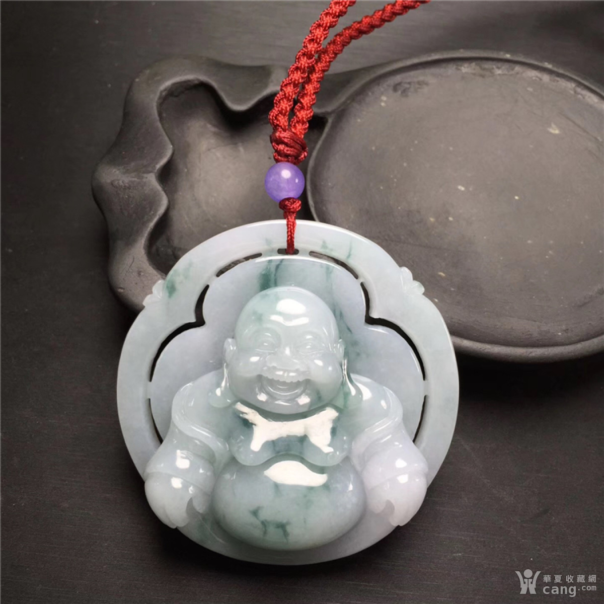 W366回流老库存糯冰种飘绿翡翠弥勒佛圆佩