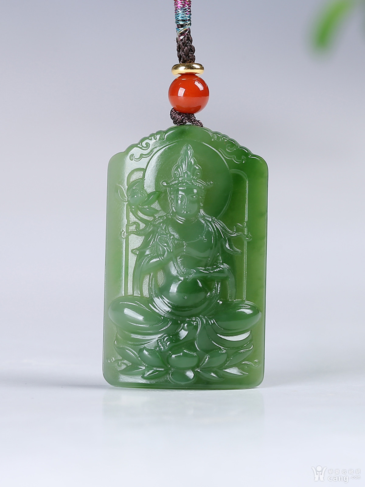[普渡众生]和田玉碧玉观音莲花仿古牌子挂件吊坠12.47g