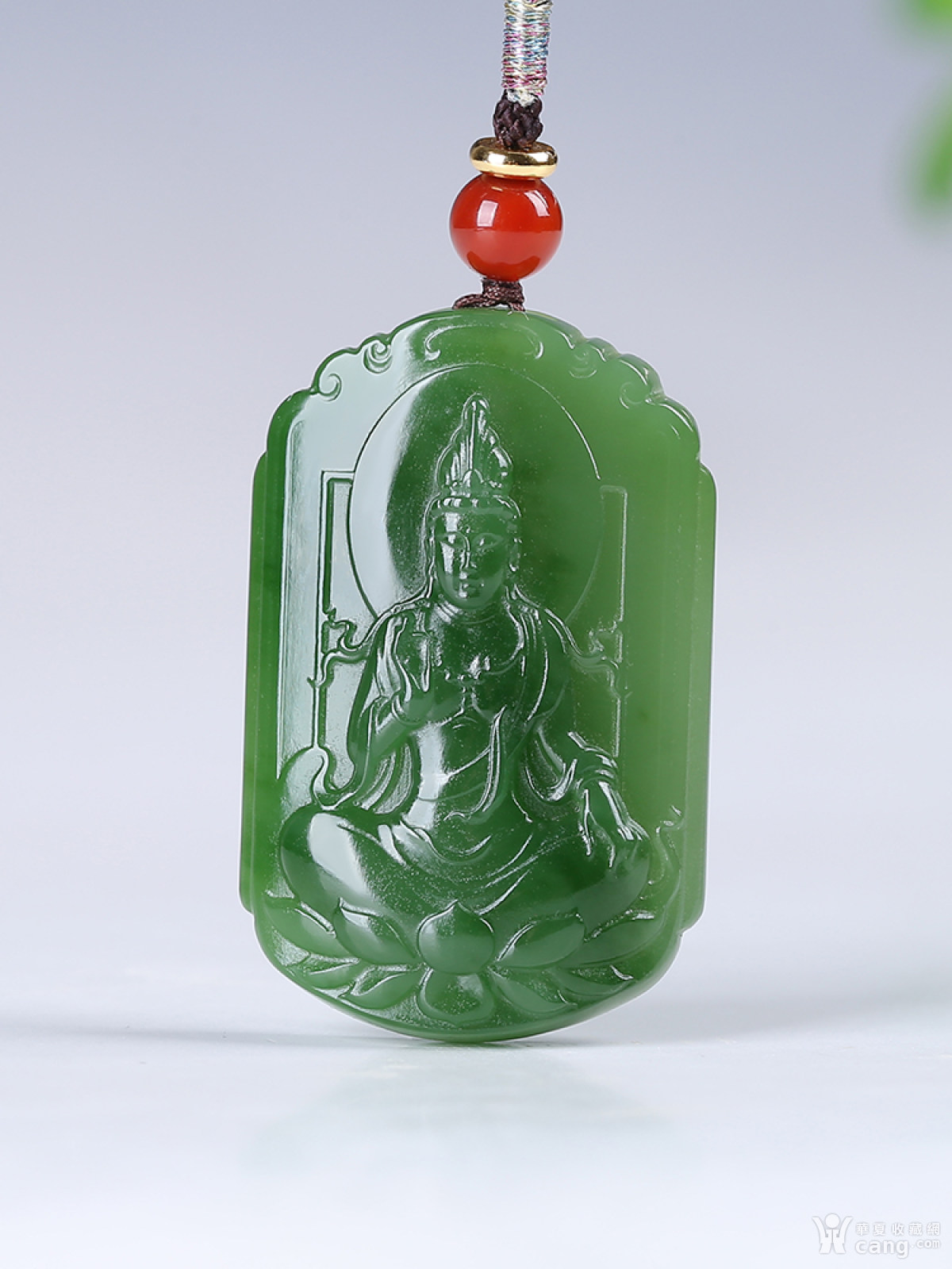 [普渡众生]和田玉碧玉观音莲花仿古牌子挂件吊坠15.32g