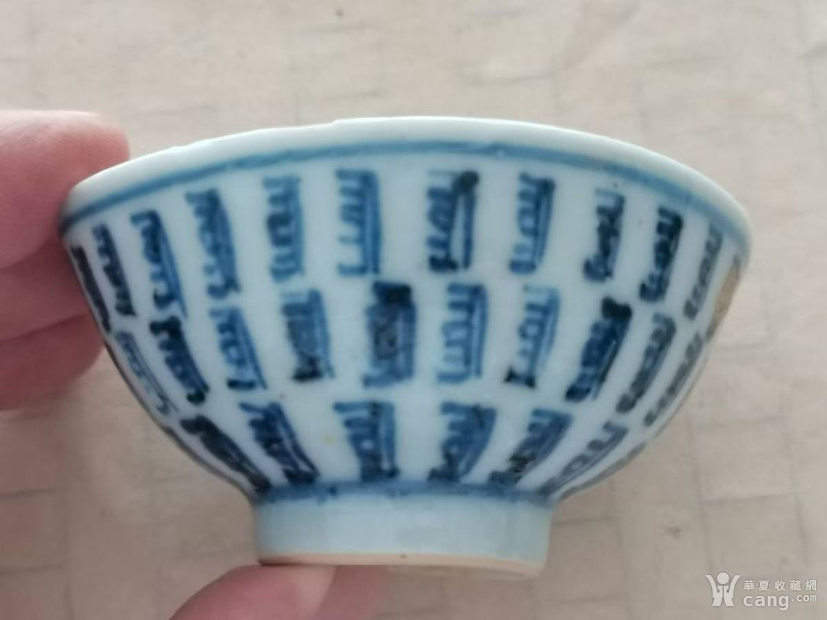 老青花百寿纹椭圆杯